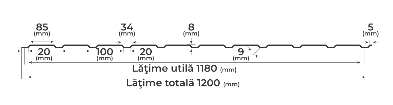 Tabla cutată este produsă din tablă din oțel, zincată pe ambele părți și protejată cu poliester.